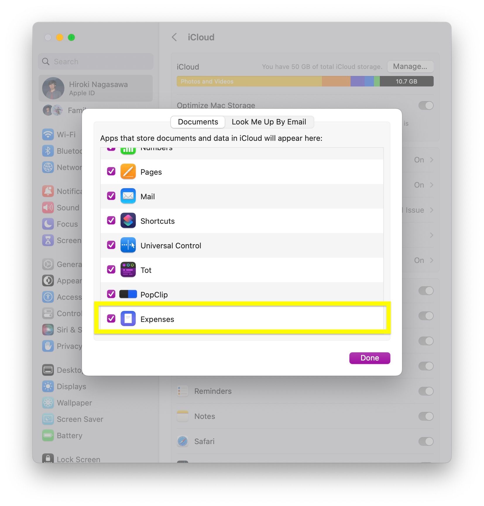 System Settings (System)→Apple ID→iCloud Drive (Documents)and make sure that you checkExpenses