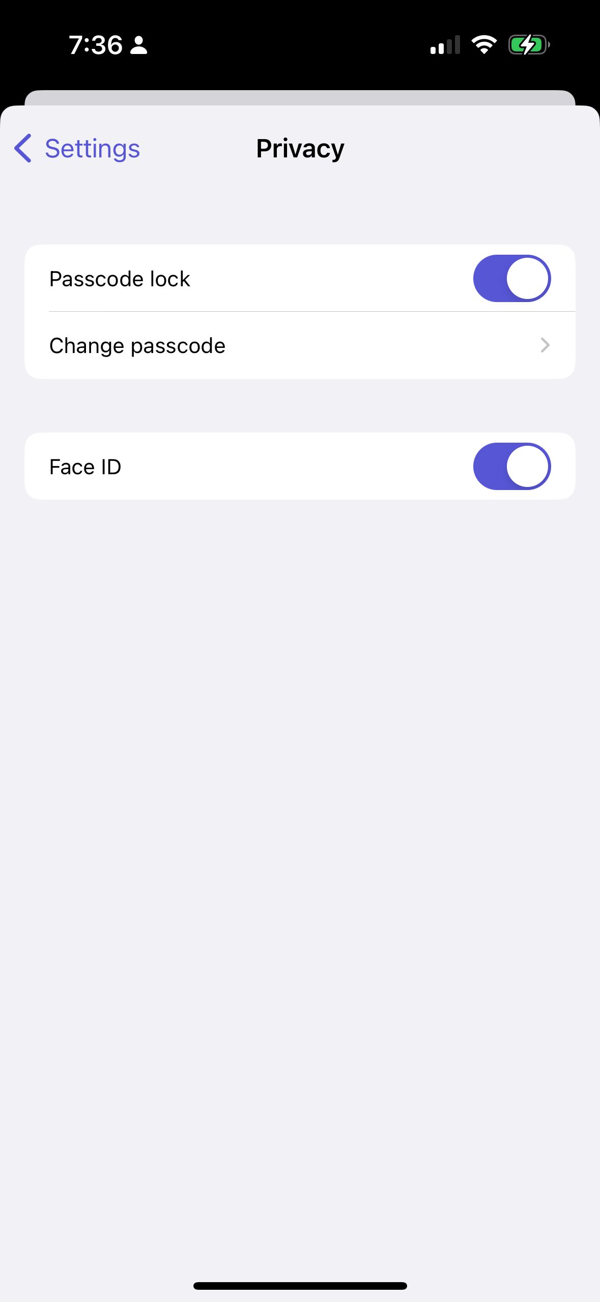 The app supports passcode lock. To enable it, go to Settings > Privacy. Note that you won’t be asked to enter the passcode when the app is running in the background. To enable it, make sure that you close the app. For more information, see How to close an app.