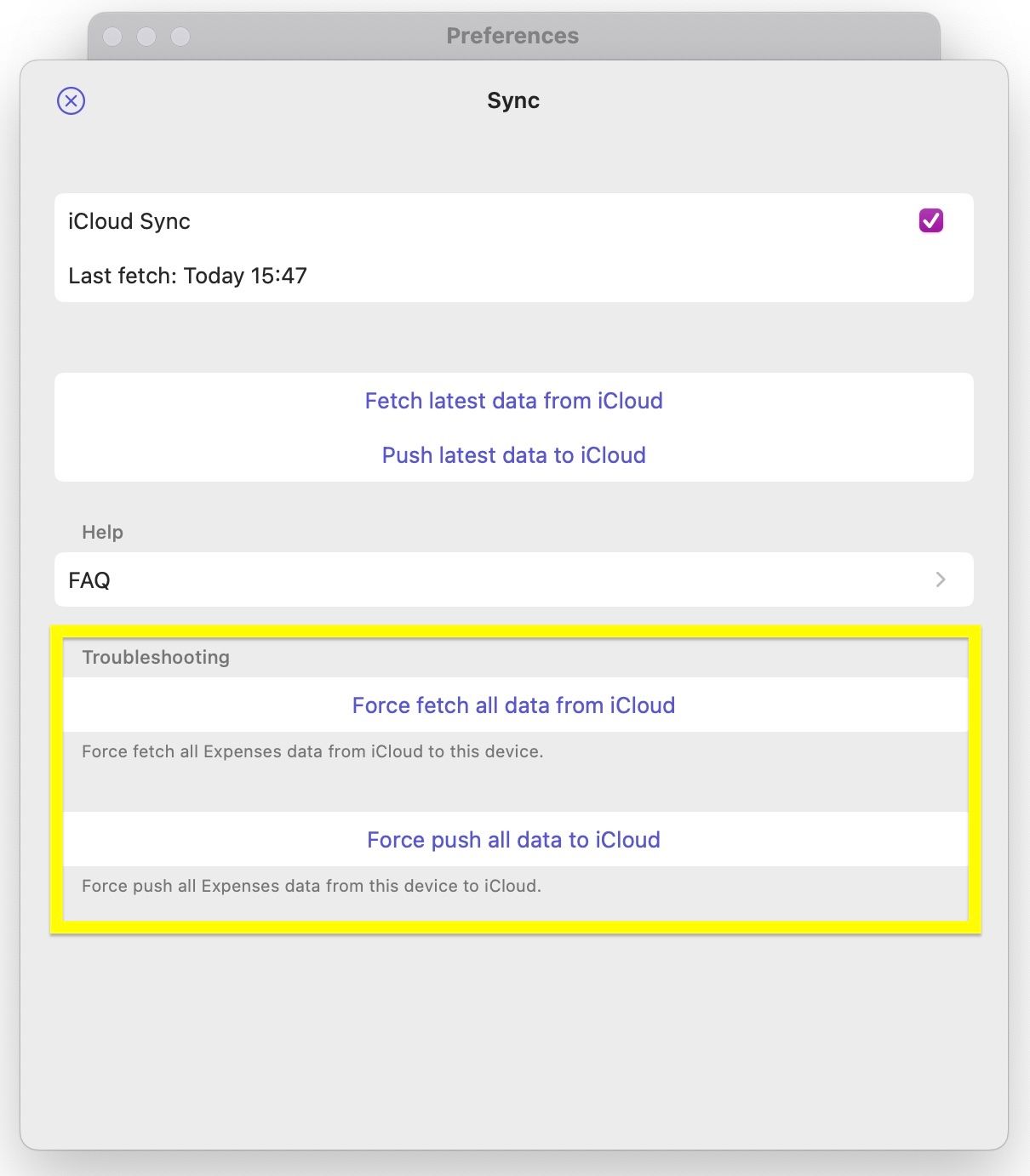 Settings... (Expenses)→Sync - Make sure that you select the checkbox to enable iCloud Sync